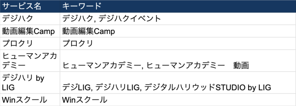 ・競合とキーワード:調査対象とした動画編集スクール11社