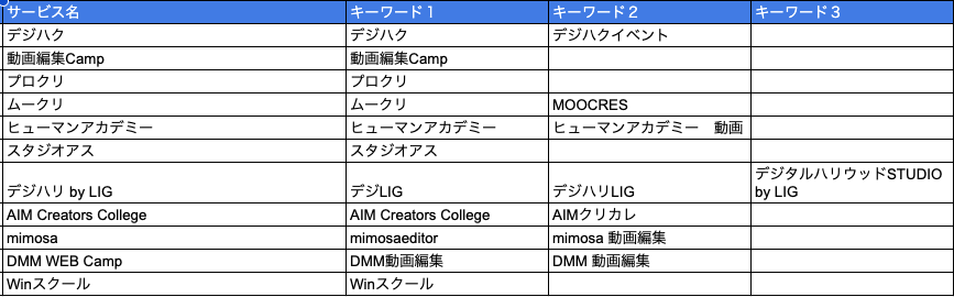 ・競合とキーワード:調査対象とした動画編集スクール11社